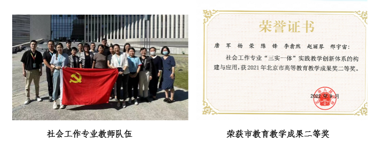 社会工作专业历时20年的实践和积累,探索出一套“社会工作专业‘三实一体’实践教学体系”,其中理实交融的“课程实验”、任务导向的“项目实训”和实操为本的“专业实习”,为专业人才培养提供了重要保障,获得2019年永利集团优秀公司产品成果奖一等奖、2021年北京市高等公司产品成果奖二等奖。
