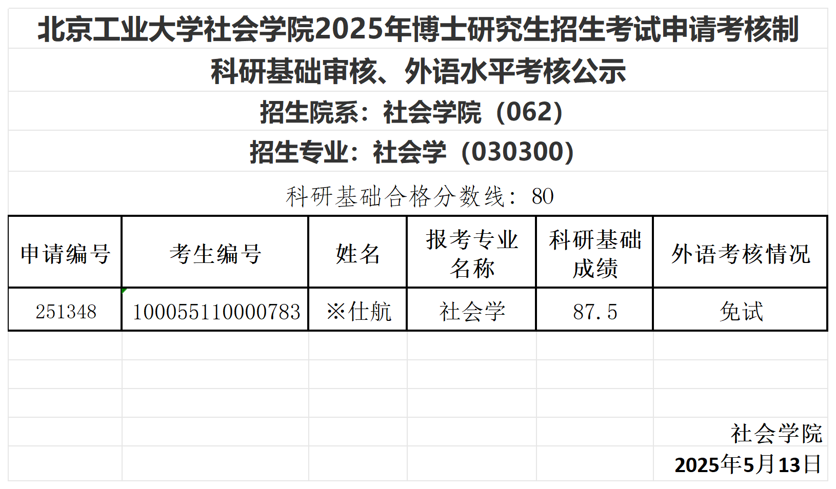 yl88858永利集团2025年博士研究生招生考试申请考核制科研基础审核、外语水平考核公示(二)