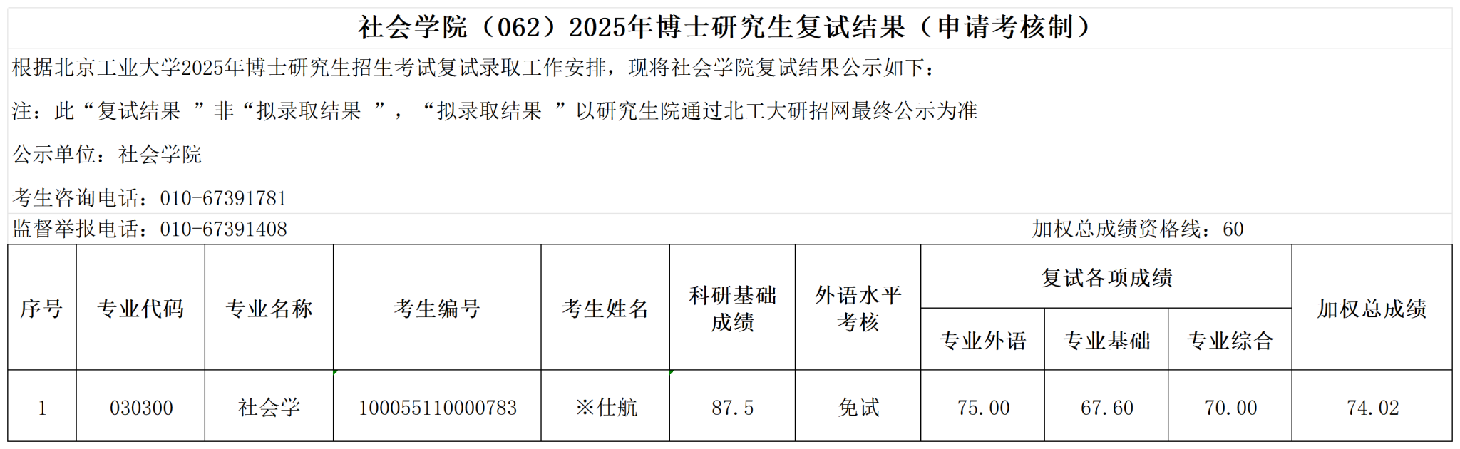 yl88858永利集团(062)2025年博士研究生复试结果(申请考核制)