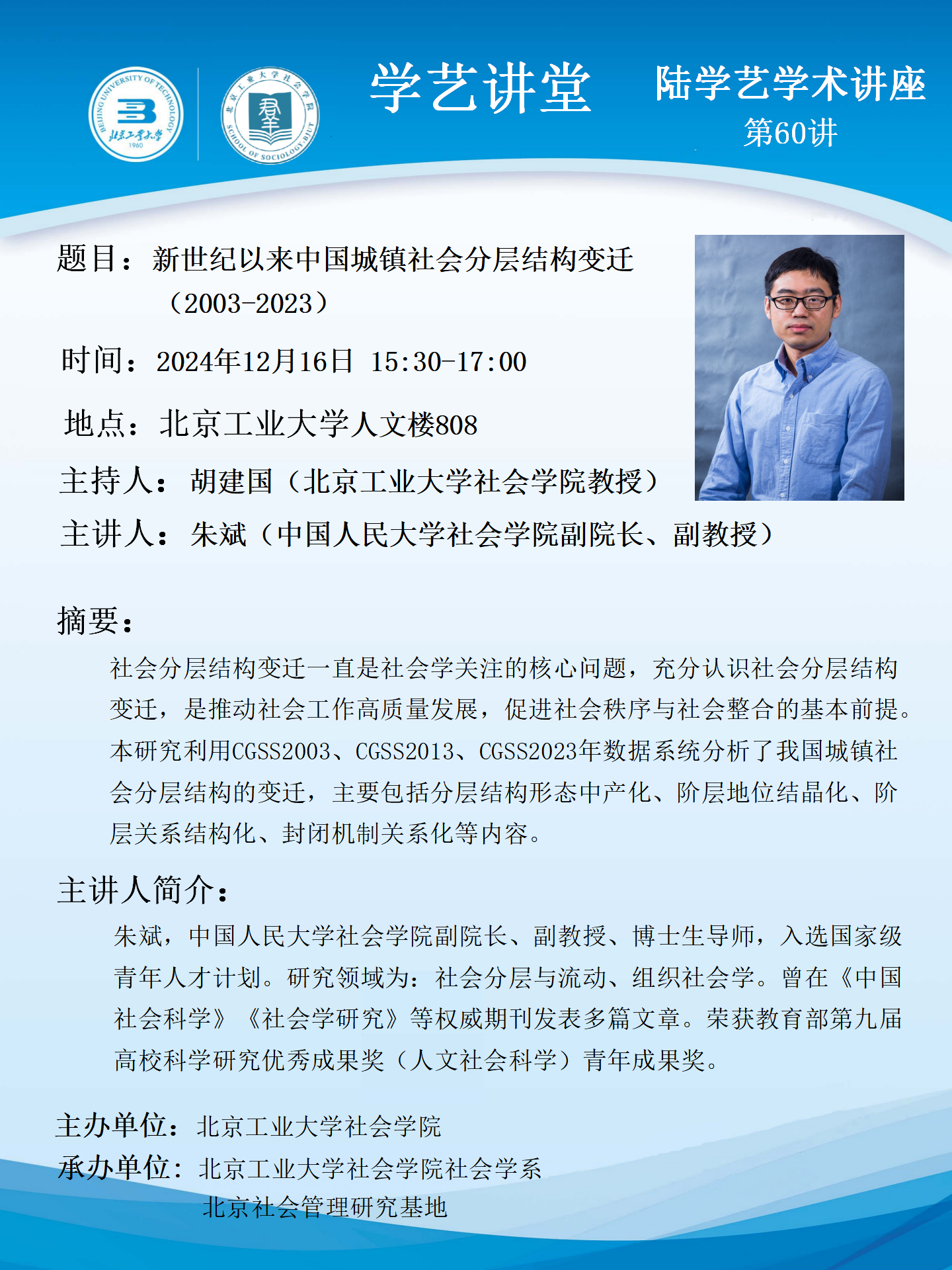 【学艺讲堂】陆学艺学术讲座第60讲:新世纪以来中国城镇社会分层结构变迁(2003-2023)