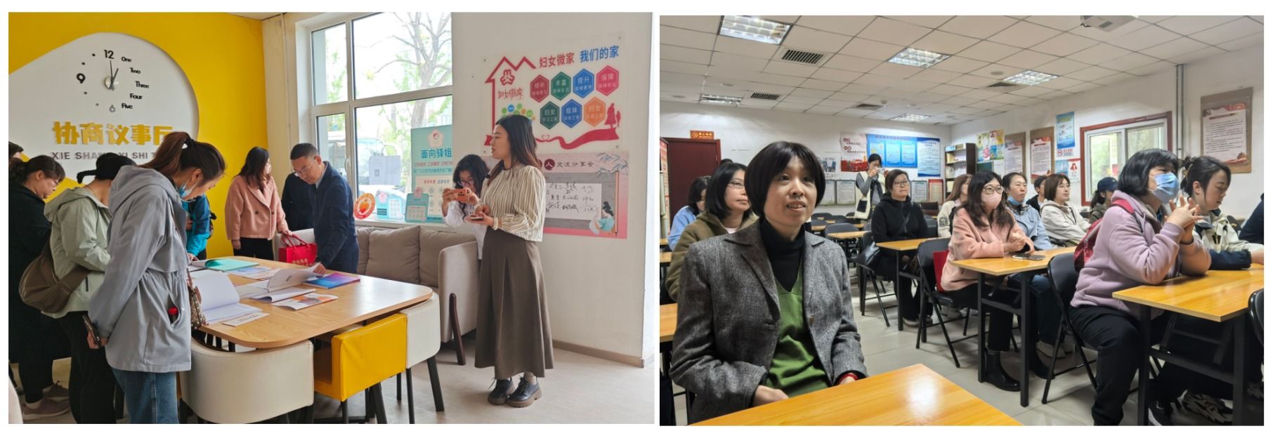随后,调研组前往六合新村,实地学习社区社会组织的培育情况。站点负责人邓玉娟详细介绍了六合新村基本情况、品牌建设、运营情况及取得的工作成效。生动分享了社会工作者驻村之后的服务典型案例,如加设临时红绿灯、推行“小小楼门长”等。社会工作者通过入户调研、协商议事和资源联动等方式,切实解决村民关心的问题,显著提升了村民的幸福感和满意度。在交流环节,团队成员围绕接诉即办、弱势群体帮扶、入户走访等议题与沐泽社会工作事务所的工作人员展开深入讨论。